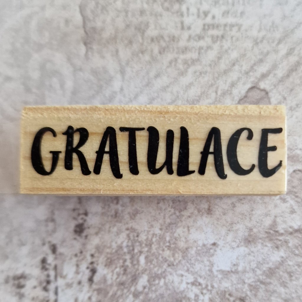 RAZÍTKO gumové na dřevě (text: GRATULACE)